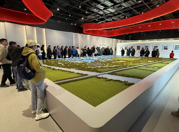 怀着对学校未来发展的热切期盼,教师们来到了雄安新区容城县大学城项目建设指挥部。在这里,讲解员详细介绍了新区高等教育布局规划以及北京交通大学雄安新校区的选址、设计理念与最新建设进展。通过聆听讲解和观看规划沙盘,那座即将拔地而起的现代化、智能化、共享化的新校区蓝图清晰地呈现在大家眼前。教师们倍感振奋,深刻认识到学校融入雄安、服务国家战略的重大意义,增强了作为交大人的自豪感和使命感。