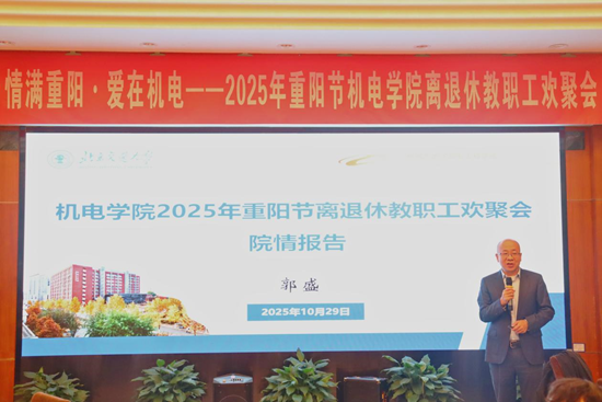 情满重阳,爱在机电。10月29日中午,p站 举办“情满重阳·爱在机电”——2025年重阳节离退休教职工欢聚会。p站 领导班子成员、各系中心主任书记、师生代表与离退休老同志欢聚一堂,共庆佳节、共话发展。