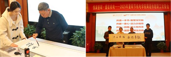 为进一步弘扬尊老敬老传统,发挥老同志独特优势,学院关工委策划推出“银青同行·温情五共”系列活动,包括“共读一本书”“共健一身心”“共忆一段路”“共唱一首歌”“共尽一份心”五项内容,旨在搭建老教师与青年学生互动交流的平台,实现思想碰撞、情感交融与精神传承。活动现场,退休教师路加栓与学生代表共同挥毫,以一幅书法作品为“五共”活动拉开序幕,笔墨之间传递出机电人代代相传的温暖与力量。