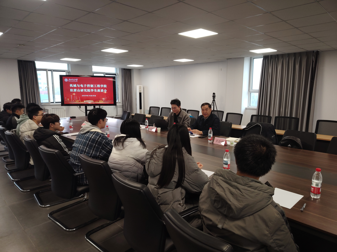 魏旺强一行和唐山研究院辅导员马浩然共同组织召开了研究生新生代表座谈会,逐一倾听学生入学以来的学习生活情况和相关意见建议。魏书记鼓励新生珍惜唐山研究院良好的生活条件,主动加强与导师的沟通交流,并表示学院会认真解决大家反映的问题,进一步优化提升管理和服务质量。